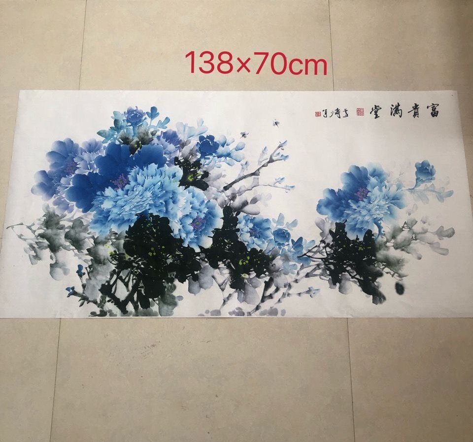 - 中国水墨画 王雪涛 牡丹 花開富貴 青い牡丹 中国美術 リビング 学習 見本 練習用 表装なし 画仙紙 画芯 鑑賞 装飾 印刷 zh1139