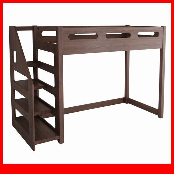 - ロフトベッド★お子様から大人まで 宮棚 階段付きロフトベッド シングル/ロフト下に自由な空間を/すのこ仕様/木目調 茶/ウォールナット/a3