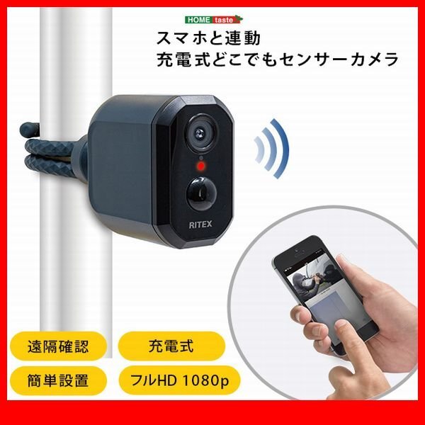 - 防犯★新品/充電式センサーカメラ/配線不要 簡単設置 屋外 屋内 夜間でも/防犯対策 お子様 ペットの見守りに/ブラック/zz