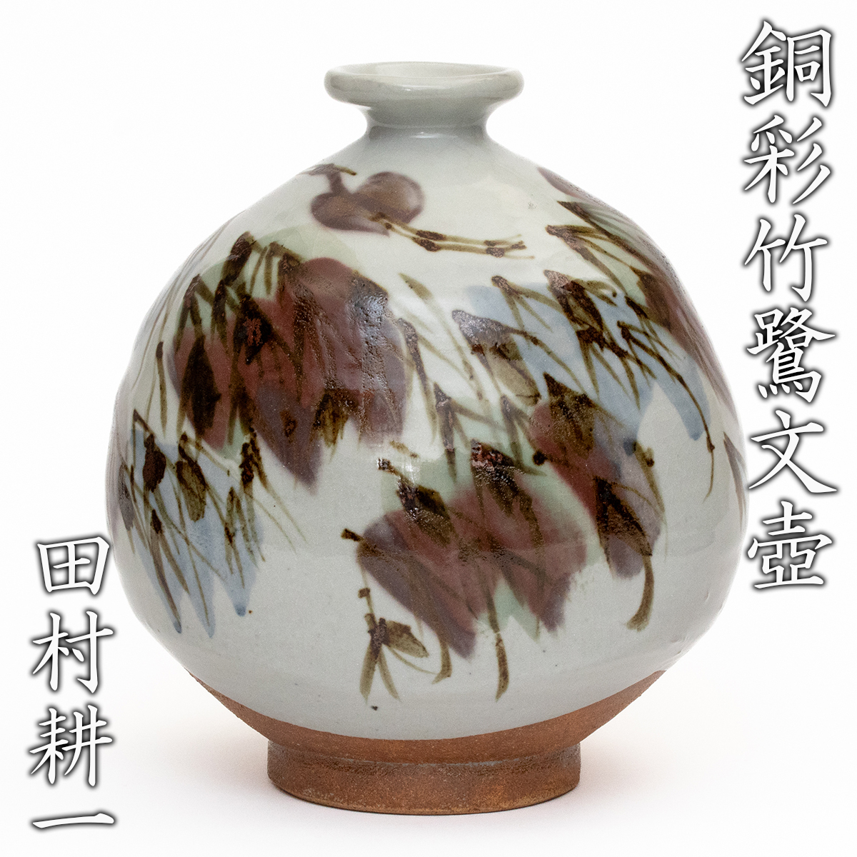 - 田村耕一『銅彩竹鷺文壷』最上位希少作 共箱 共布 本物保証 送料無料 新品同様【松森美術】