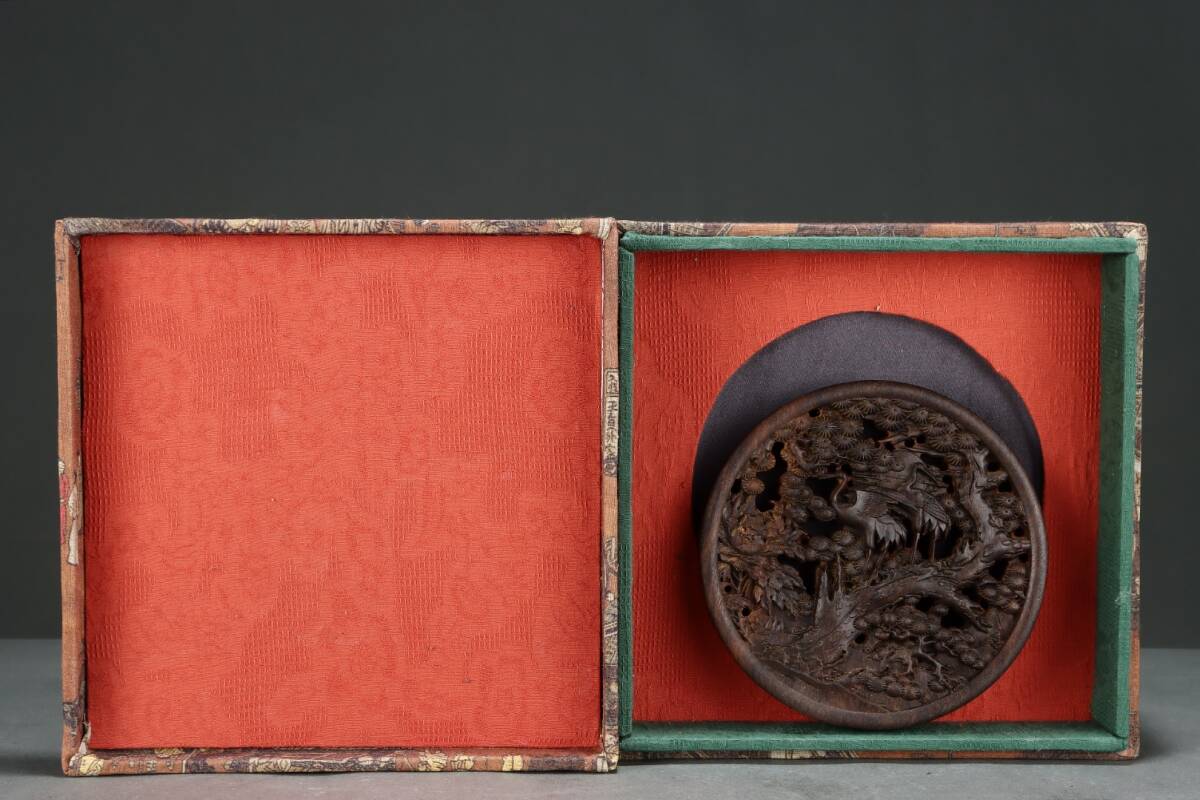 - 旧蔵 沈香木彫 松鶴 圓盤 古擺件 古置物 中国古玩 骨董品 時代物 稀少唐物