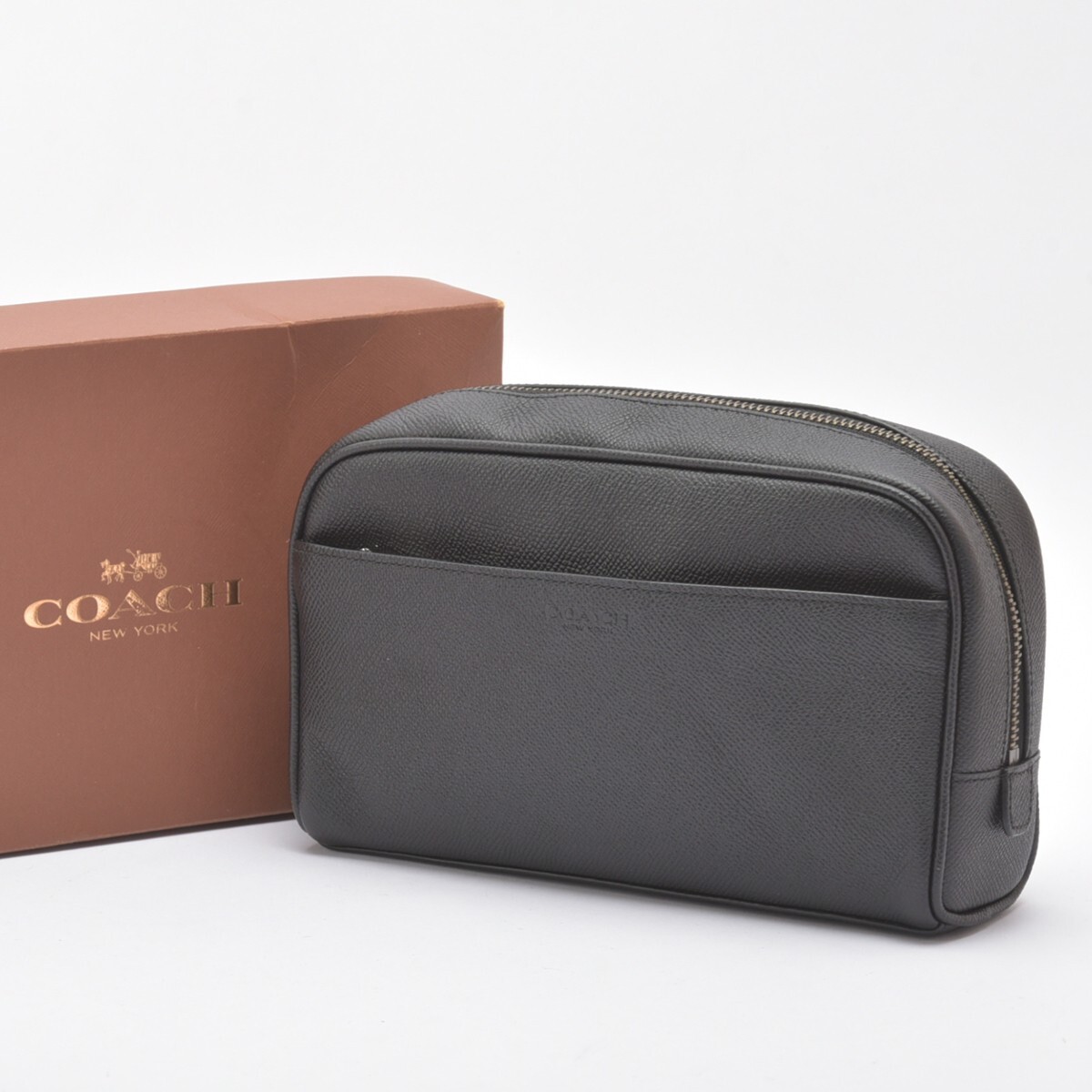 - 1円~ 新品 COACH コーチ セカンドバッグ バニティバッグ クロスグレインレザー ブラック 93515 箱付 クラッチ ポーチ 鞄 /071030-24/k.a