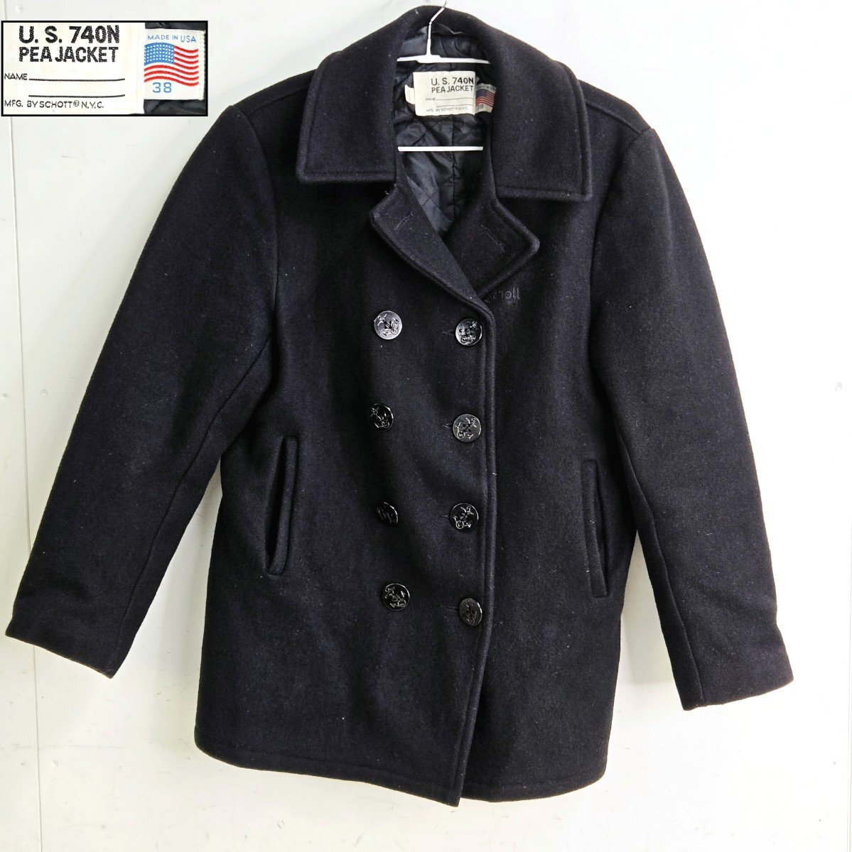 > SCHOTT N.Y.C. ショット ピーコート U.S. 740N PEA JACKET 38 ブラック 古着 MADE IN USA メルトンウール アウター アメカジ ヴィンテージ