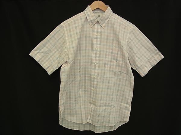 > ■美品■ dunhill ダンヒル コットン100% チェック柄 半袖 Yシャツ トップス 表記サイズ M 洋服 メンズ ピンク系×ブルー系 DK5362