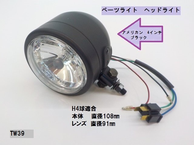 - ラスト1点!TW★☆汎用 ベーツライト ヘッドライト(4)(アメリカン・4インチ・ブラック)タイワン製 高品質