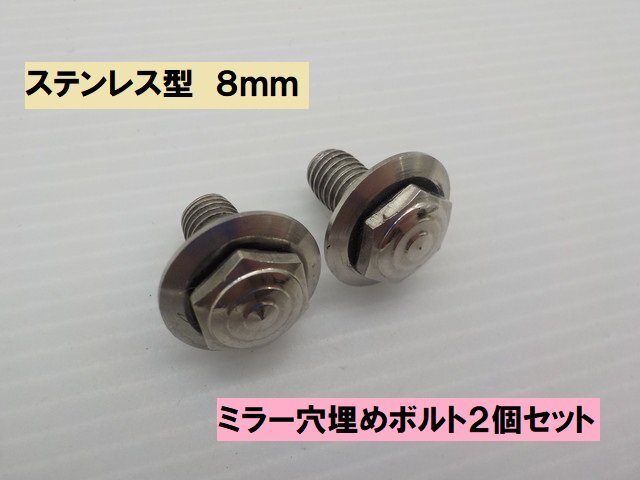 - VT★☆(18)汎用 ステンレス製 8mm ミラー穴埋めボルト2個セット(バーエンドミラー)(バリオス シャドウ FTR エイプ レッツ)