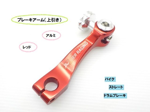 > TH16★☆汎用アルミブレーキアーム(上引き)ストレート(ドラムブレーキ バイク)スズキ車不可 レッド(CB400SF マグナ シグナス)