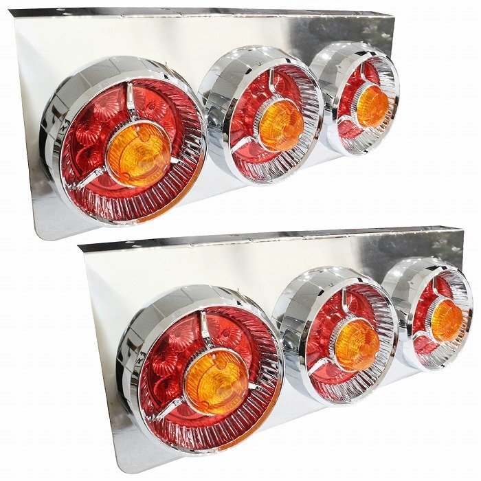 - 『赤/黄』中型 大型 トラック レトロ 廃盤 復刻 3連 丸型 ヤンキー テール ランプ ダンプ デコトラ ロケット 左右 レンズ 24v