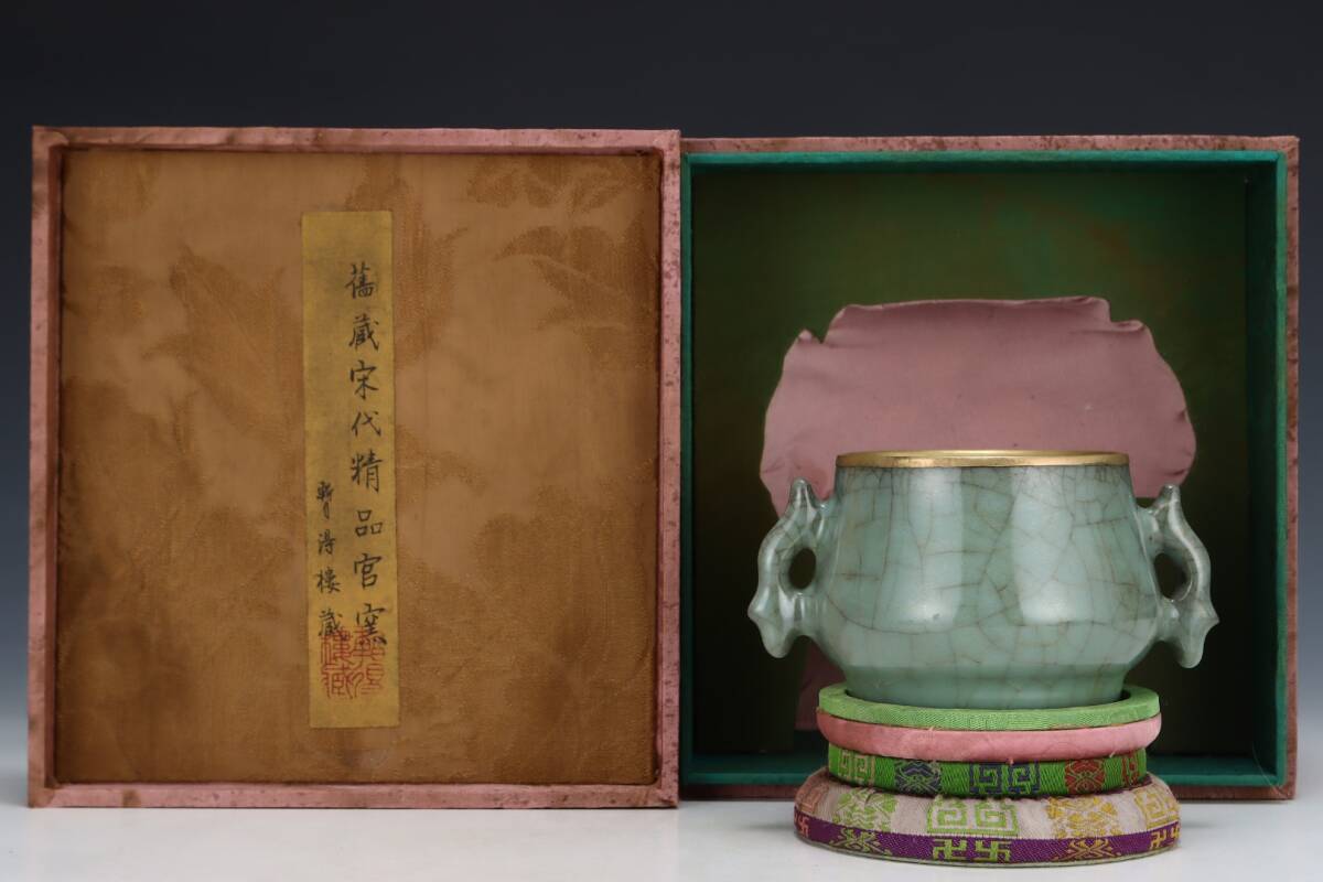 - 旧蔵 宋代 官窯 雙耳炉 古陶瓷品 陶藝 古擺件 古置物 中国古玩 骨董品 時代物 稀少唐物