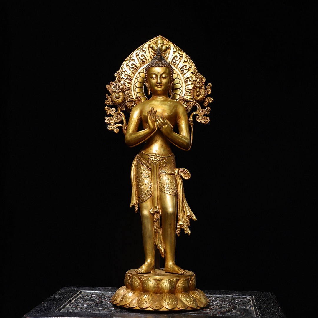 - 旧蔵 古銅彫 塗金 釋迦牟尼 佛像 古擺件 古置物 中国古玩 骨董品 時代物 稀少唐物