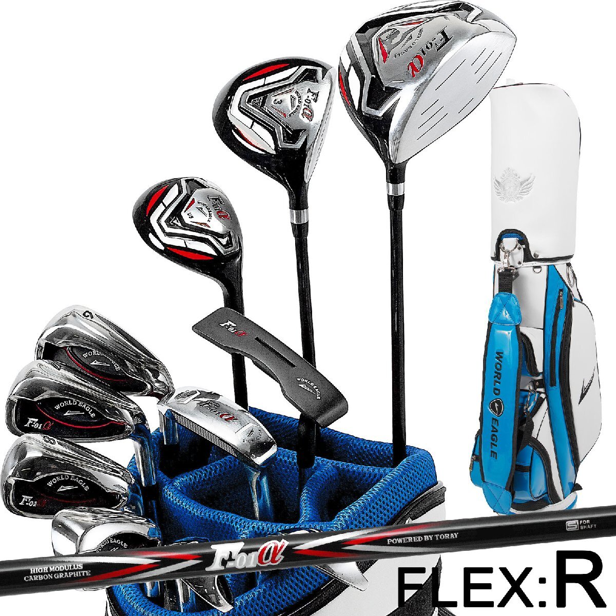 > F-01α クロスモデル メンズゴルフクラブセット CBX005 ブルーカラーカートバッグ付 右利き用 フレックスS[38015]