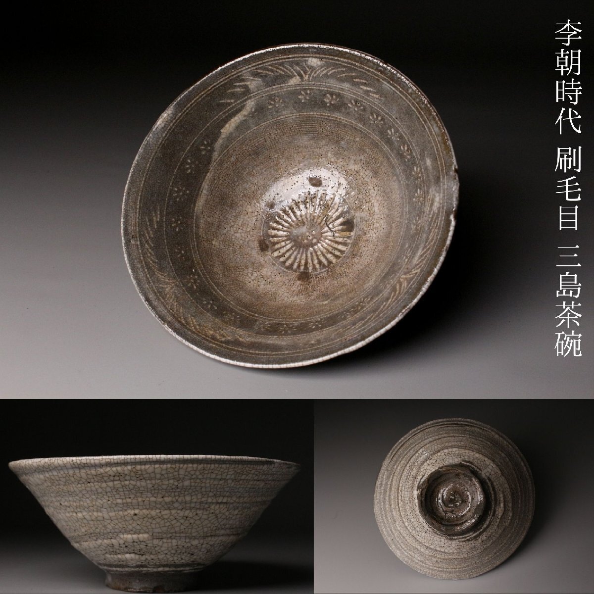 > 【LIG】李朝時代 刷毛目 三島茶碗 朝鮮古陶 高麗茶碗 古美術品 渓竜山 コレクター収蔵品[.T]25.11