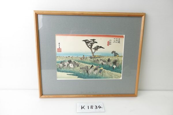 - 【k1834】真作 歌川広重 「東海道五拾三次 池鯉鮒 首夏馬市/東海道五十三次」 木版画 浮世絵 松田寅蔵 遠藤忠推