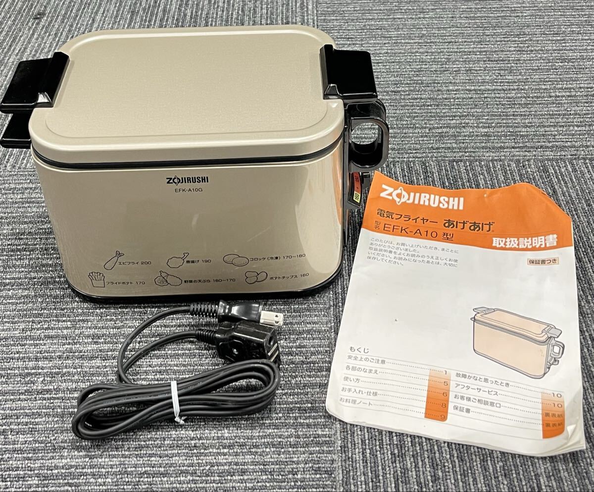 - 杉本 11月 No.110 ZOJIRUSHI 象印 電気フライヤー あげあげ EFK-A10 調理器具 2016年製 箱無し 説明書付き 通電動作確認済 汚れ有り