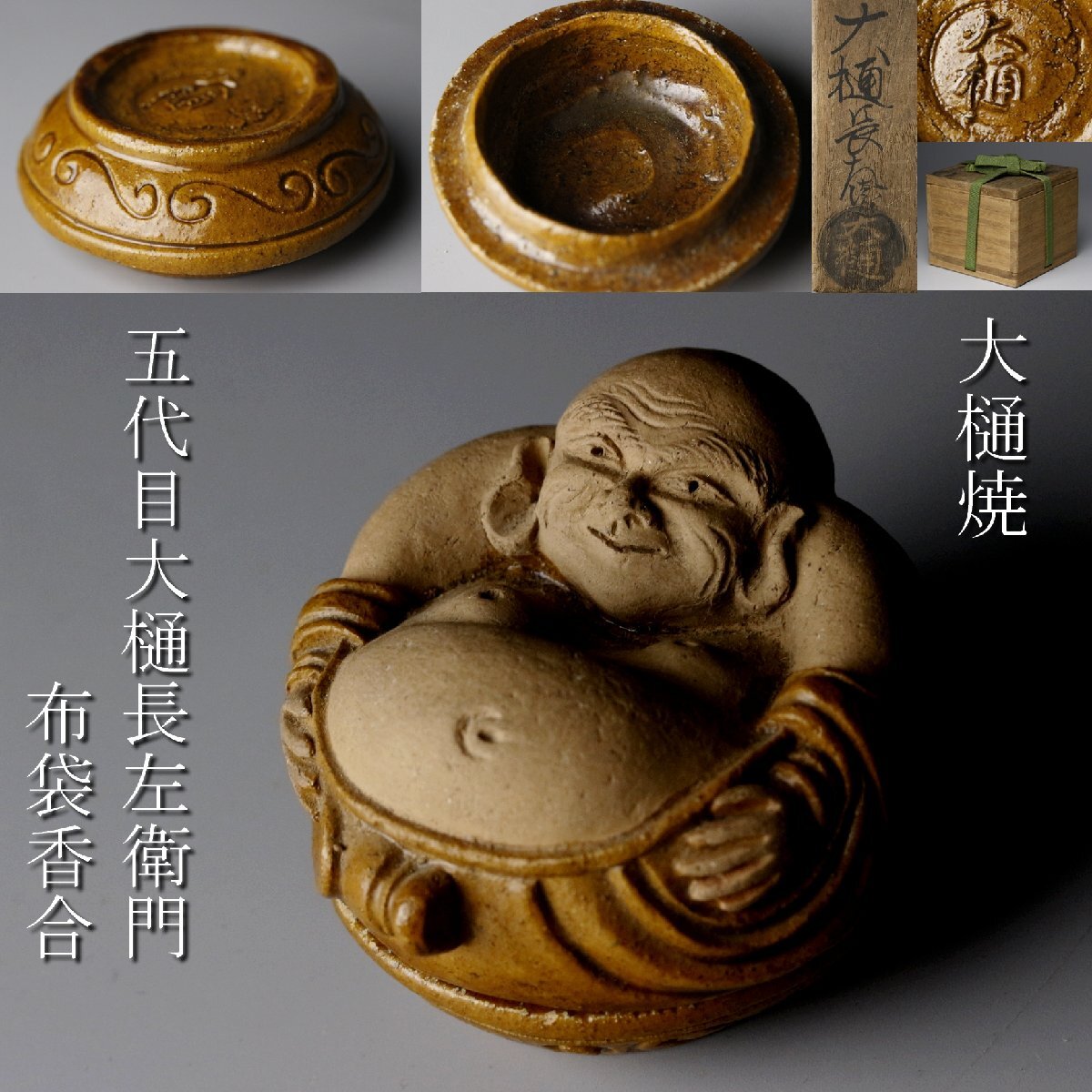 > 【LIG】大樋焼 五代目大樋長左衛門 布袋香合 6.5㎝ 共箱 旧家収蔵品 [.W]25.11