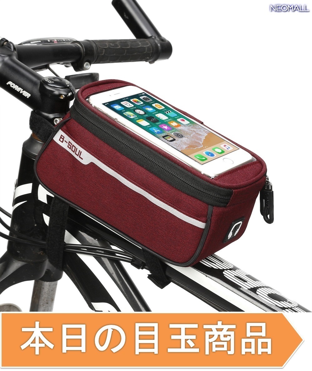 - 本日の目玉☆ トップチューブバッグ レッド スマホ ケース タッチパネル ポーチ 5.7インチ フロント バック 自転車 パーツ 【apa-376】