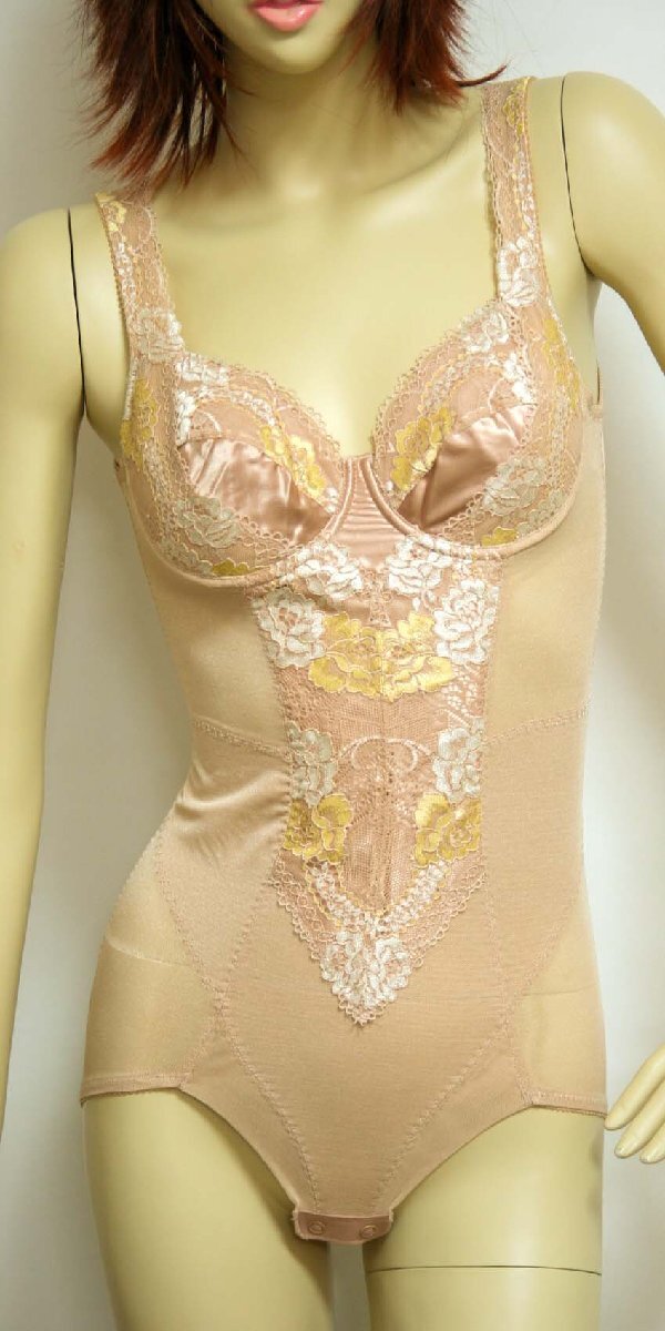 - 送料無料◆薄軽メッシュ◆サイドパネル◆バスト寄せ上げボディスーツ(C/70M/スキンベージュ)◆通気性抜群◆パワーネット◆補正下着◆