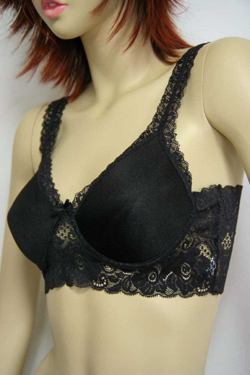 - 送料無料◆2枚組◆モールドカップブラジャー(L/ブラック)◆響きにくい◆ふわっふわ柔らか◆美バストライン◆ノンワイヤー◆花柄レース◆