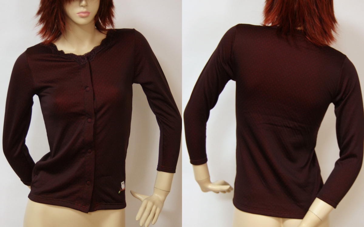 > 送料無料◆裏地:綿100%◆袋編み◆吸汗性&放湿性◆着脱テープ◆赤色縁起◆ふくろう刺繍◆マジックテープ式◆長袖インナー(LL/パープル)