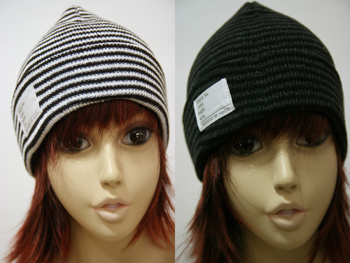 - 送料無料◆2色組◆通年タイプ◆フリーサイズ◆男女兼用◆綿混素材◆コットン75%配合◆ボーダー柄ニット帽(ホワイト&ブラック)