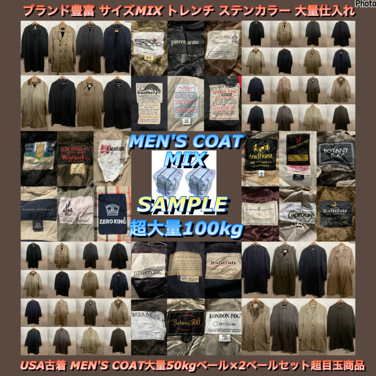 > 【T1781】★2ベールセット★ アメリカ古着卸オススメMEN'Sコート100kg 大量目玉商品 トレンチコート ステンカラーコート LONDON FOG 仕入れ