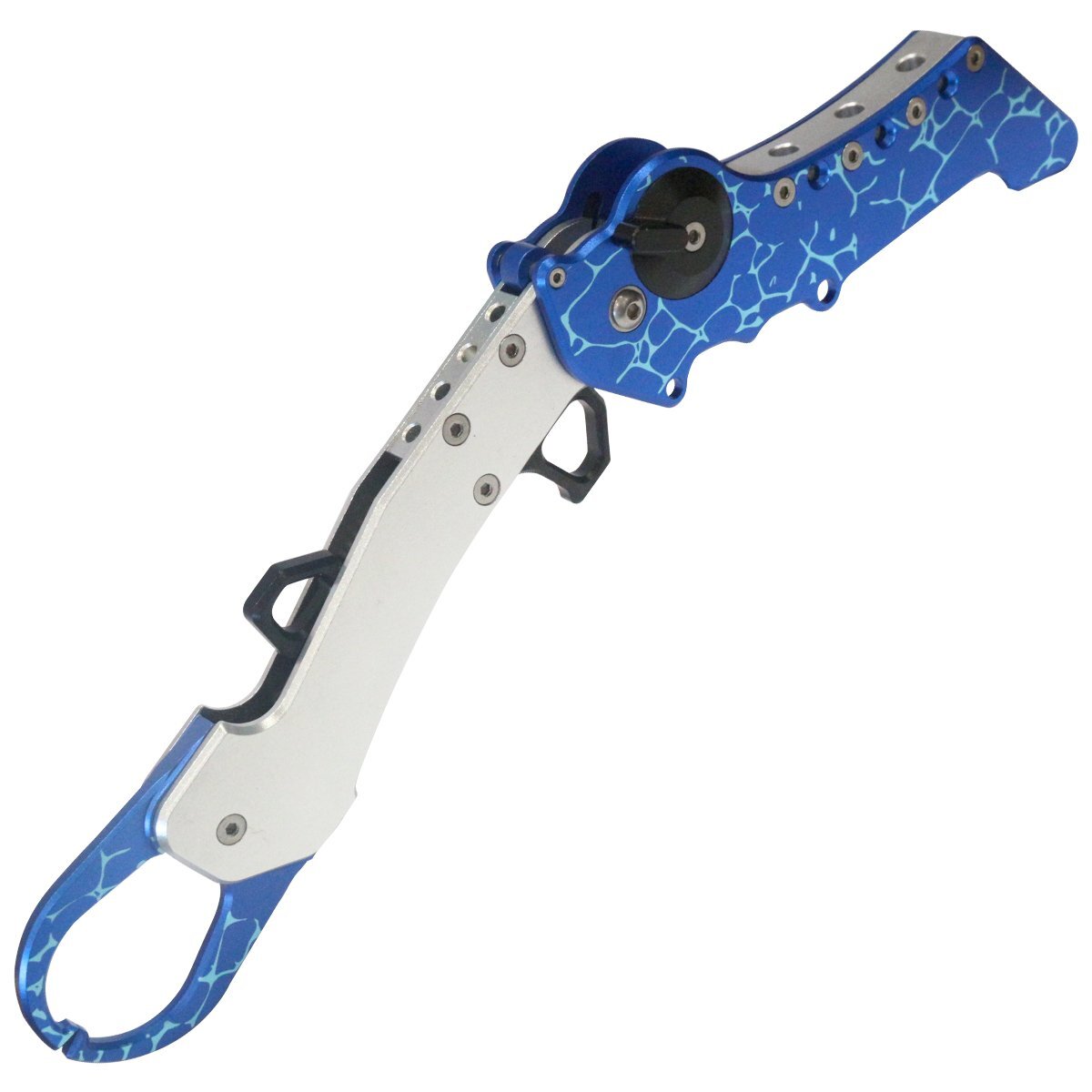 - 折りたたみ 魚掴み器 フィッシュグリップ フィッシンググリップ フィッシュキャッチャー フィッシュグリッパー アルミ製 ブルー 青