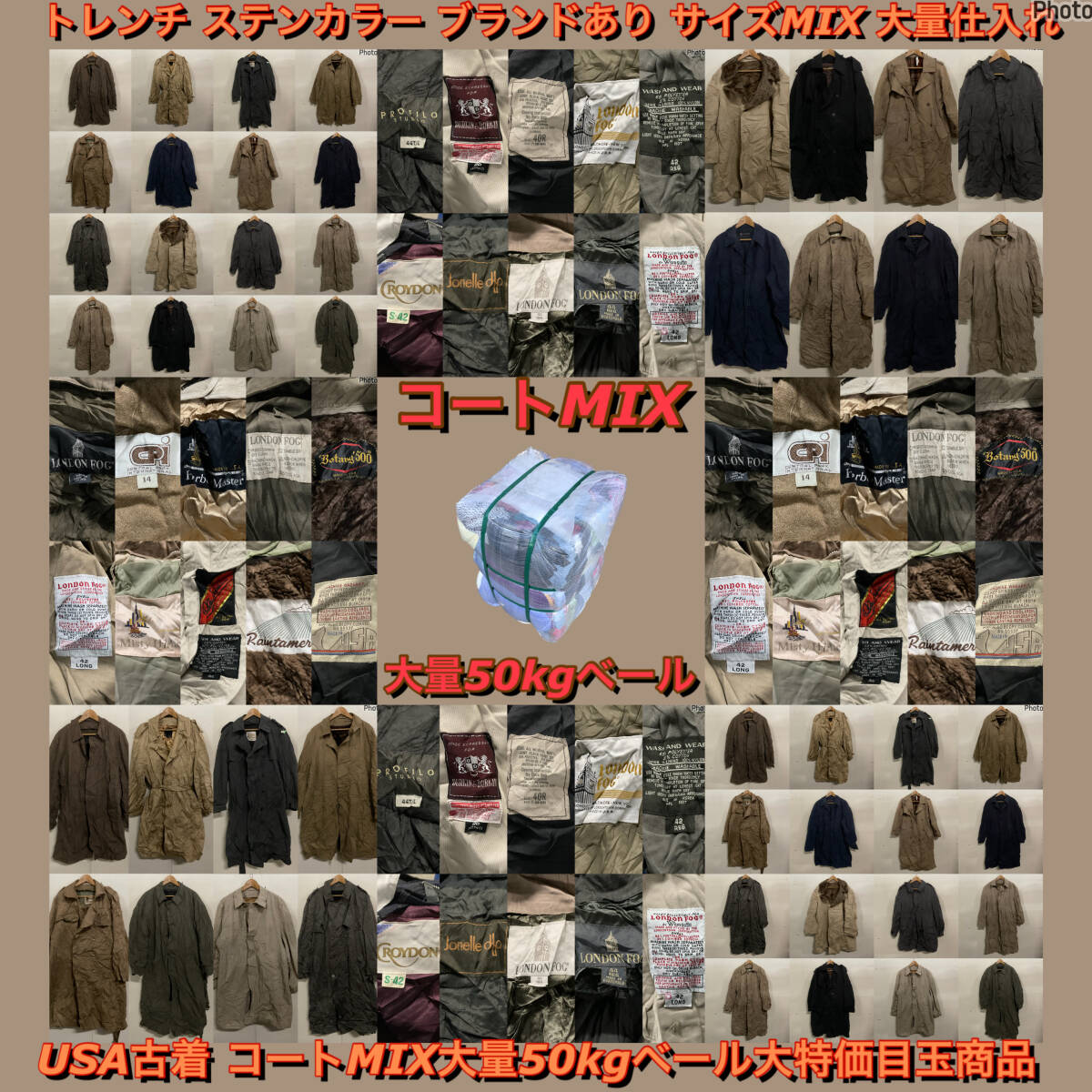 - 【T1782】★SALE★ アメリカ古着コートMIX大量50kgベール目玉商品 LONDON FOG トレンチ ステンカラー サイズMIX 大量仕入れ