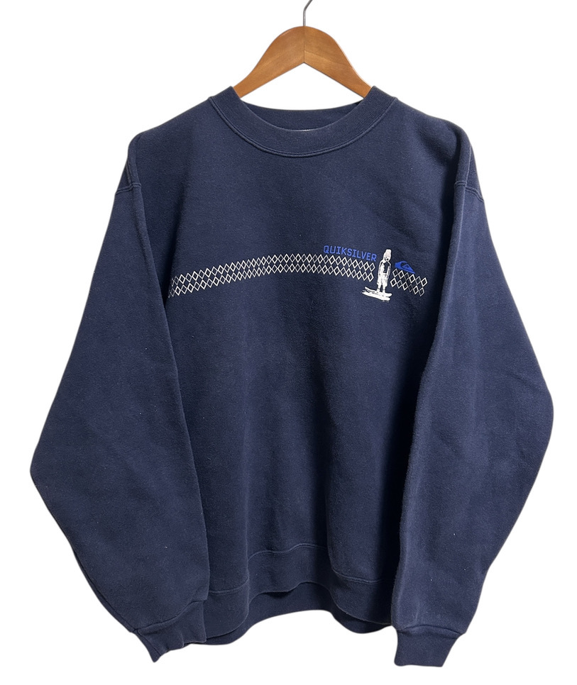 - 90's OLD▽QUIKSILVER クイックシルバー スウェット トレーナー L程度 紺 ネイビー スケボー スケート オールド ビンテージ 日本製