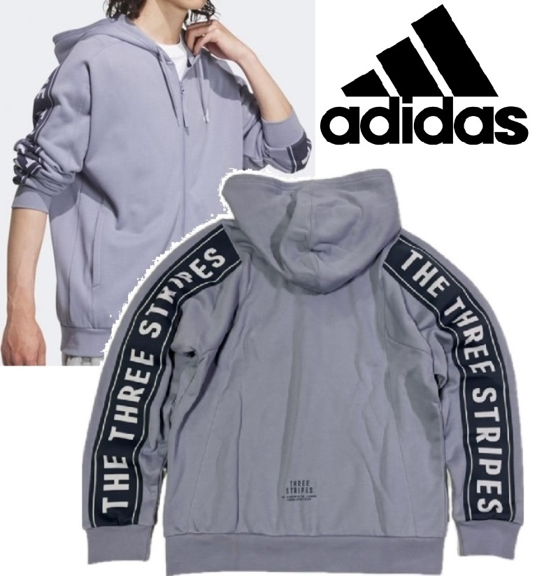 > メンズL★adidas アディダス★THE THREE STRIPES ルーズフィット フレンチテリー フルジップパーカー★シルバーバイオレット