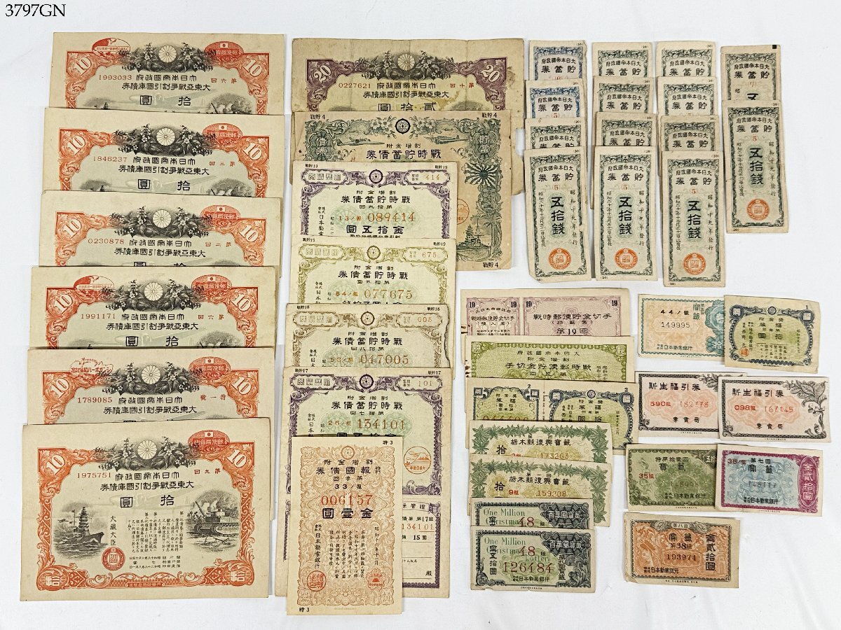 > 送料無料 古紙幣 戦時貯蓄債券 郵便貯金切手 新生福引券 報国債券 福券 鳳籤 etc.. 大日本帝国政府 古札 大量 おまとめ 3797GN-21