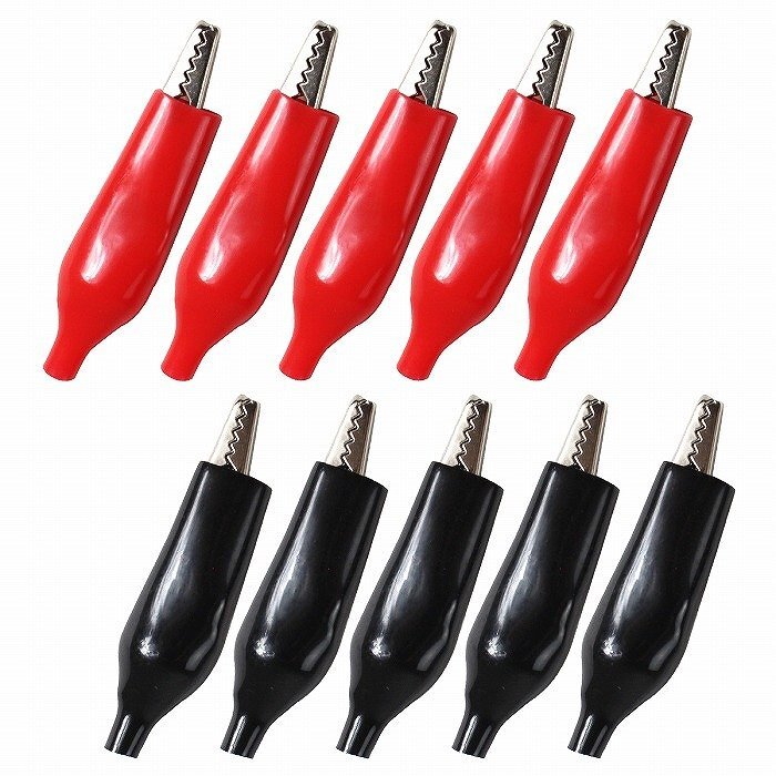 > 【送料220円】『L 大サイズ 57mm』10個セット ワニ口 クリップ 検電 電気テスト テスター 工作 保護 絶縁カバー付 +- 赤 黒 ワニグチ