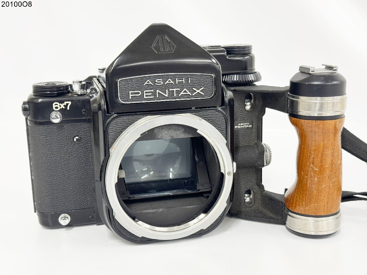 > シャッターOK ASAHI PENTAX アサヒ ペンタックス 6×7 前期 TTLファインダー 中判 フィルムカメラ ボディ 木製グリップ付 20100O8-11