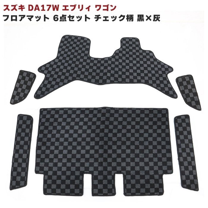 > DA17W スズキ エブリィ ワゴン フロアマット 6点 【チェック柄 黒×灰】 ステップマット付き 専用設計 高品質 エブリイ