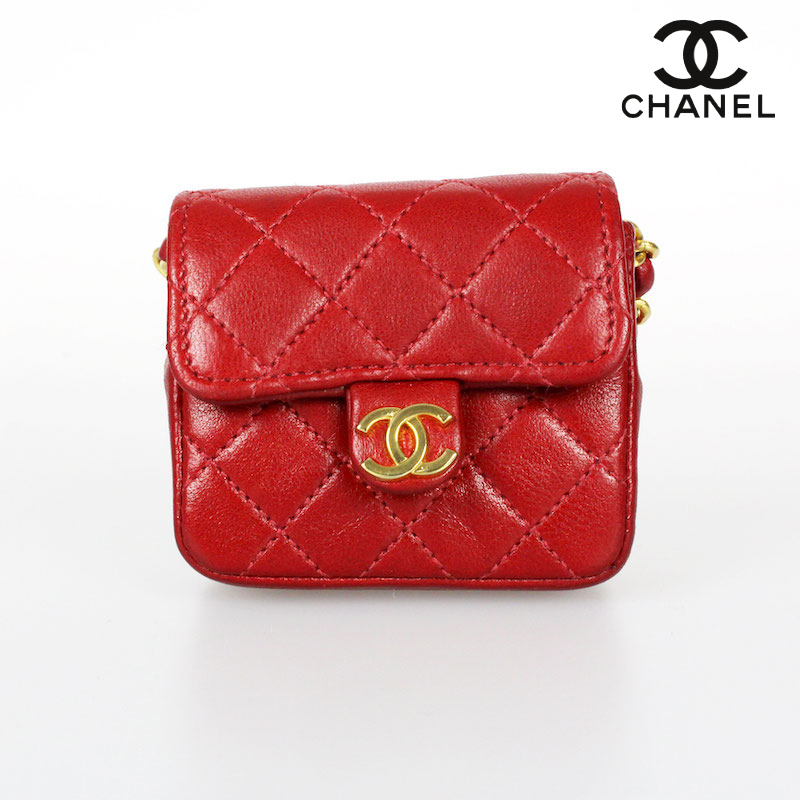 > 極美品 シャネル CHANEL ミニミニマトラッセ ベルト欠品 ポーチ レザー レッド P1376