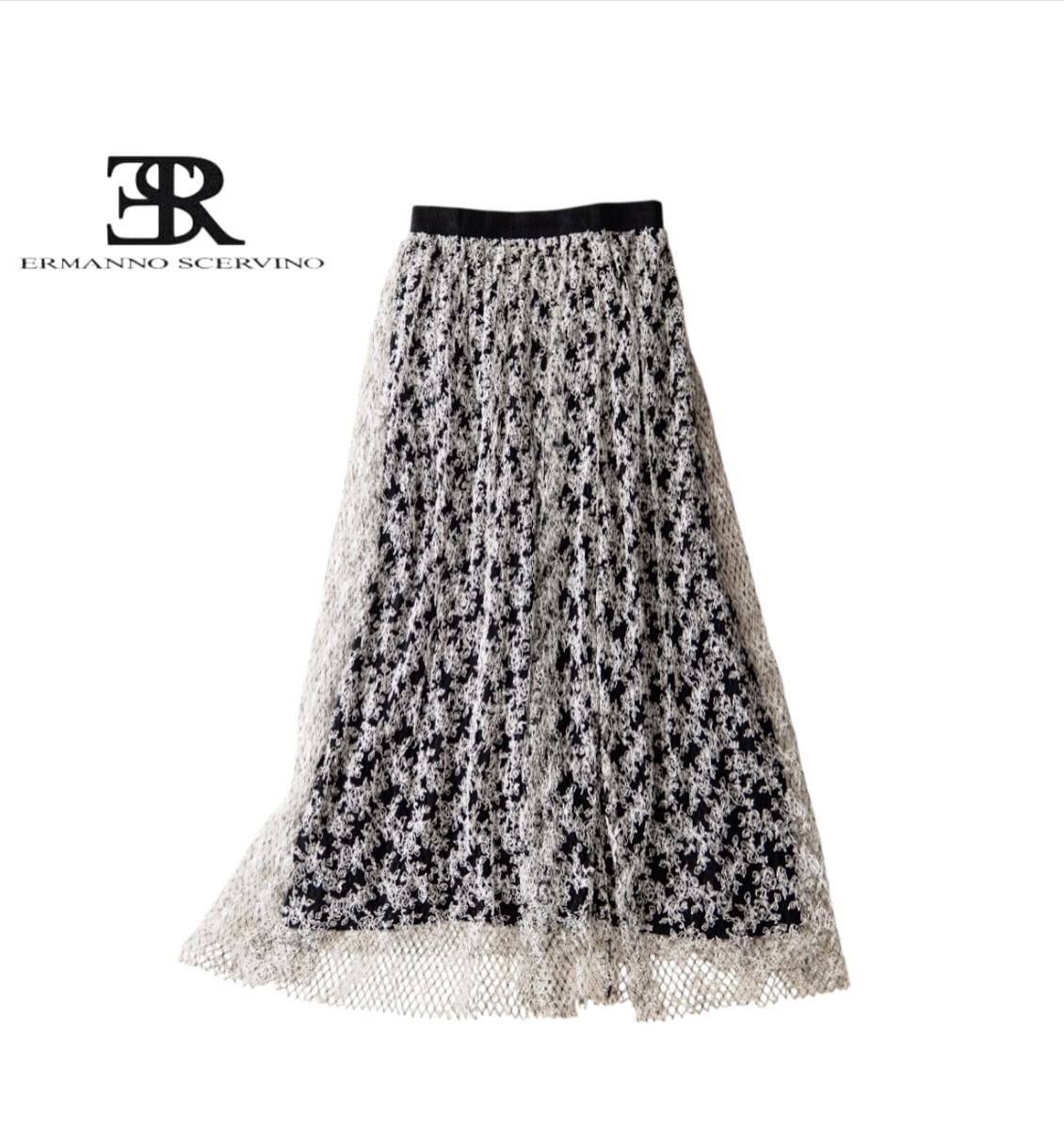 - 新品同様★エルマノシェルビーノ ERMANOSCERVINO★30万★Italy製★ウエストロゴ入り★総レース ロングスカート size 38/M相当