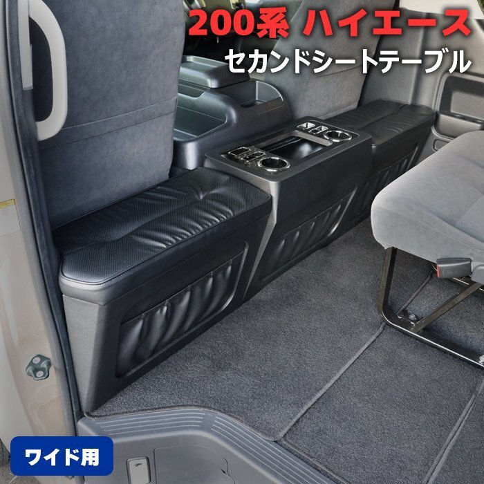 - 200系 ハイエース ワイド リア セカンド シート テーブル フットレスト PVCレザー ブラック トヨタ 1型 2型 3型 4型 5型 6型 7型 8型