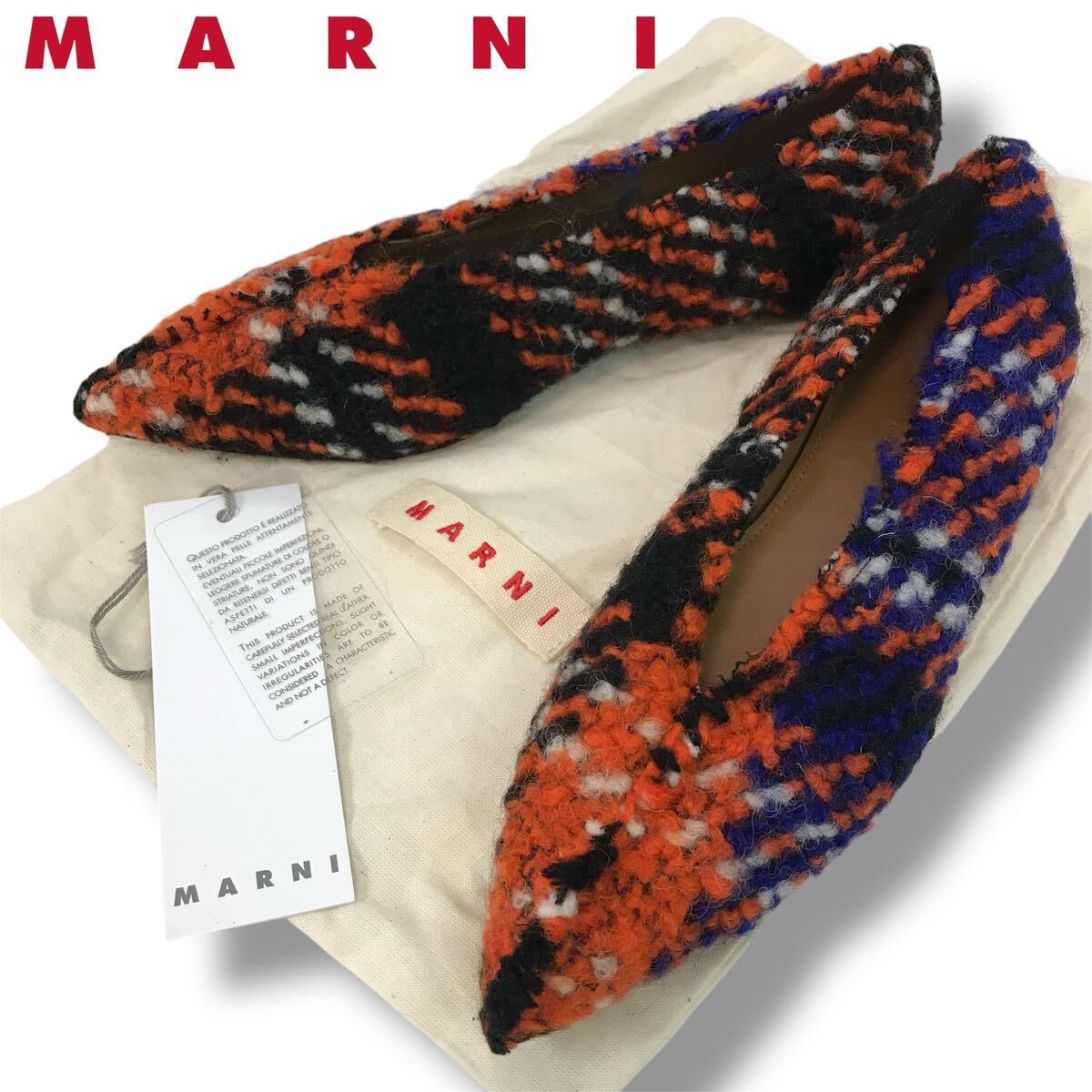 > e149 未使用 MARNI マルニ ツイード レザー フラットシューズ パンプス チェック柄 36 BAMS003000 レディース 正規品