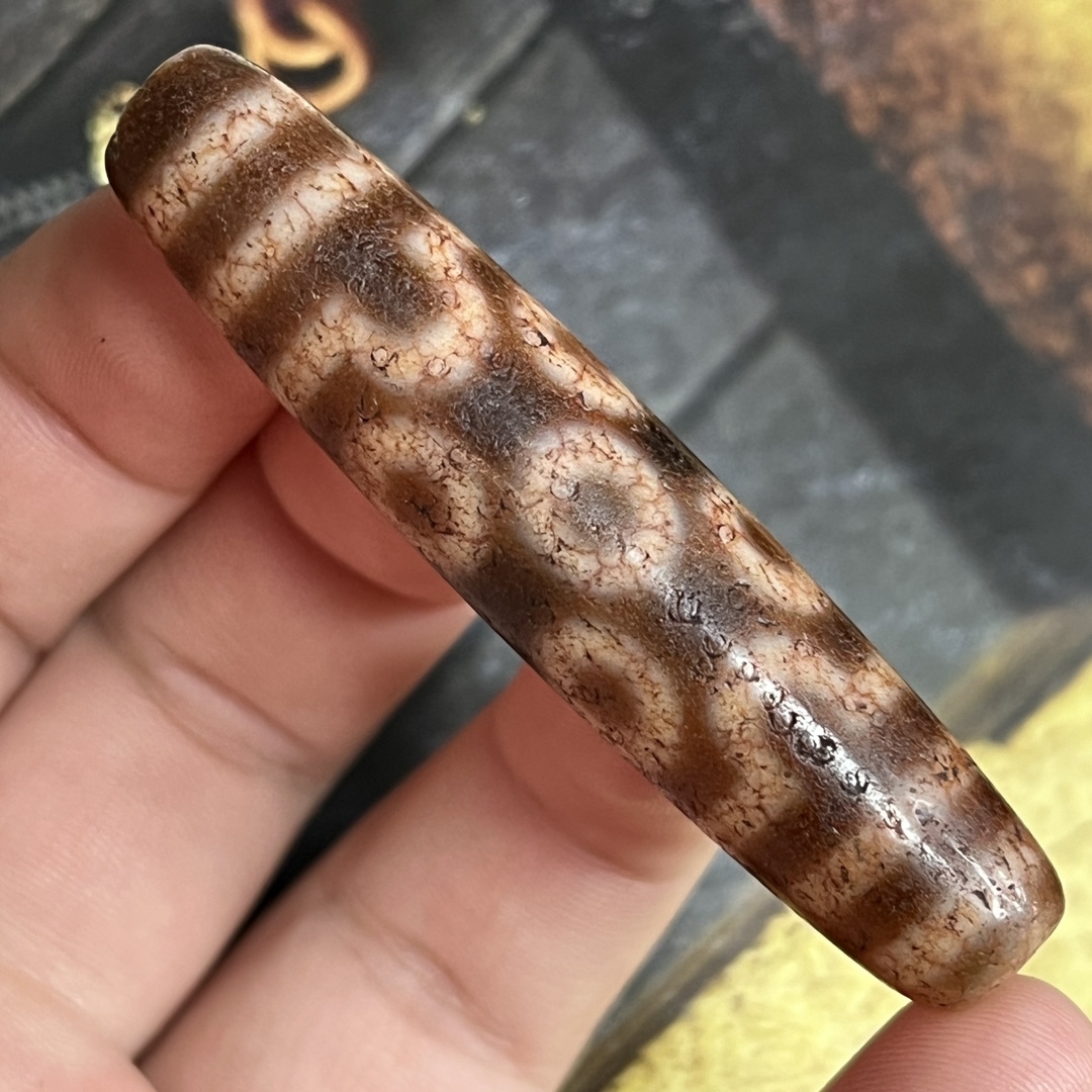 - 旧蔵 七眼天珠 風水開運 自然風化 高油 根付 中国古玩 骨董品 時代物 稀少唐物