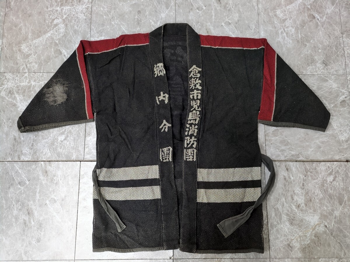 - 7.刺子生地 消防団 厚手 レトロ 羽織 法被 半纏 JAPAN VINTAGE ジャパンヴィンテージ メンズXL相当 黒系y901