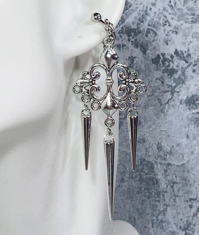 > ◆同梱発送可◆「銀色のトリプルホーン イヤリング 左右セット 女性用/レディース」fire_sale 【タグ:アクセサリー】