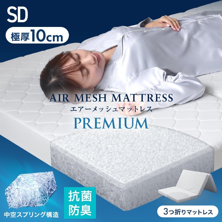 - セミダブル エアーマットレス 高反発 厚み10㎝ 三つ折り 洗える リバーシブル カバー付 高反発マットレス 敷き布団 折りたたみ 硬め 軽量