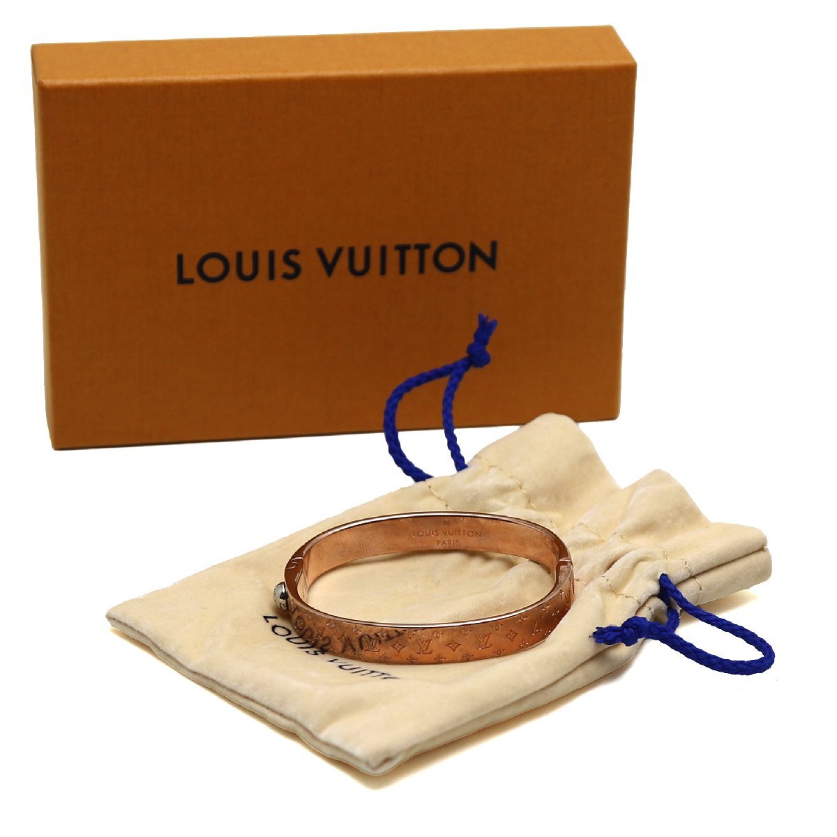 - 中古品 ルイヴィトン カフ・ナノグラム ブレスレット サイズS ピンクゴールド PG バングル M00253