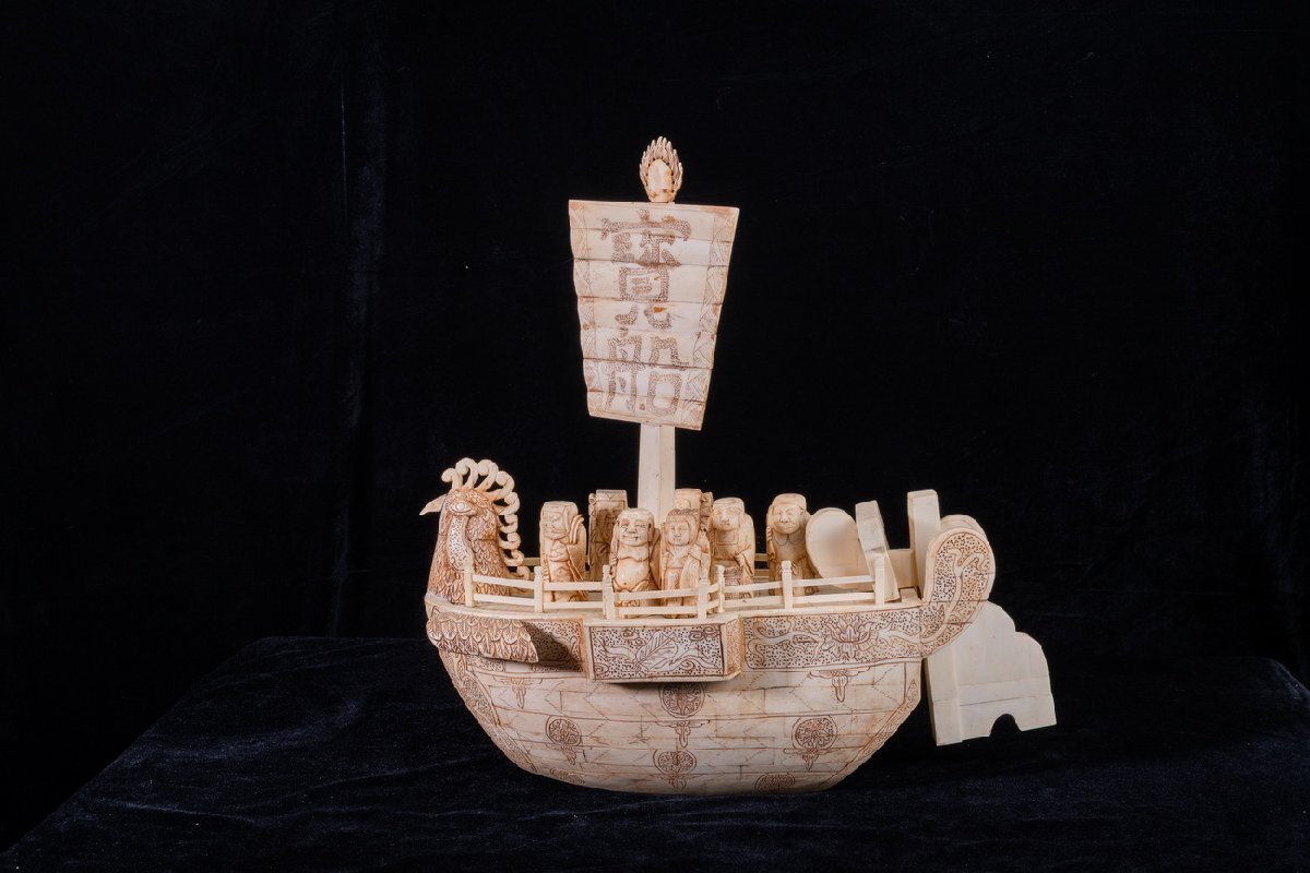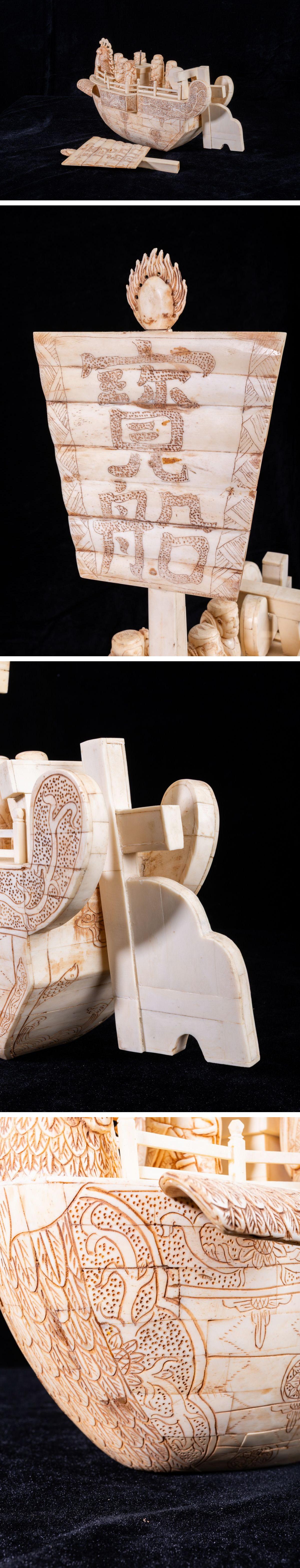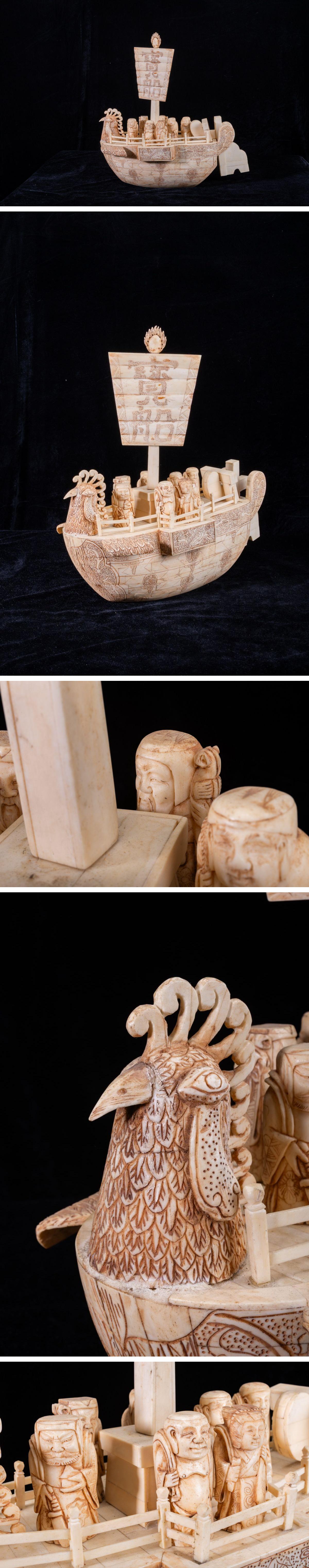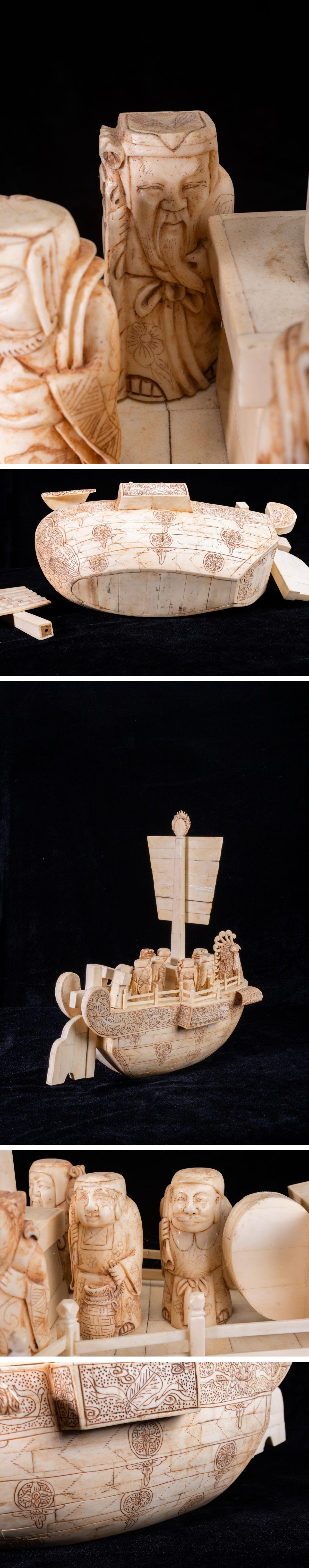 - 【珍品堂】1円から N45-17 東洋彫刻 細密彫刻 極上 天然素材 宝船 七福神 重5.68kg 特殊白材 縁起物 時代物 鑑賞品 コレクション 骨董品