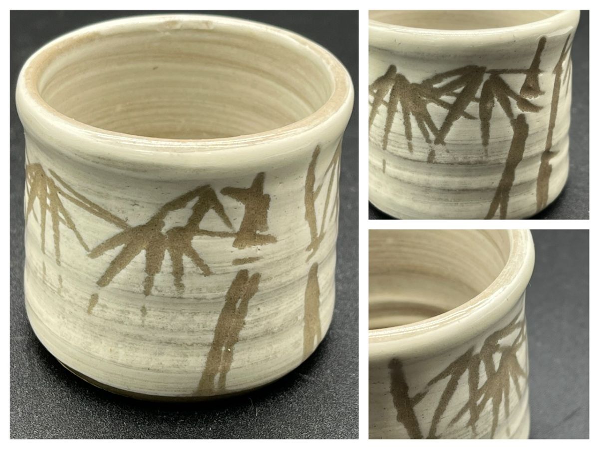 - 茶道具 竹模様 陶器製蓋置 直径5.6×高さ5.3㎝ 85g 煎茶 煎茶道具 茶道 茶道用具 陶器 陶芸 蓋置 (20322)