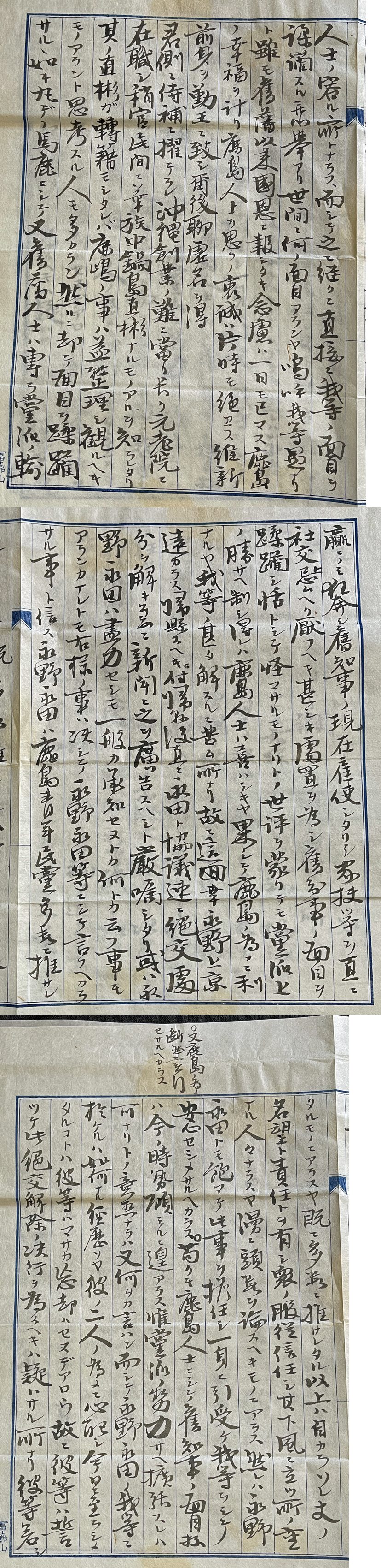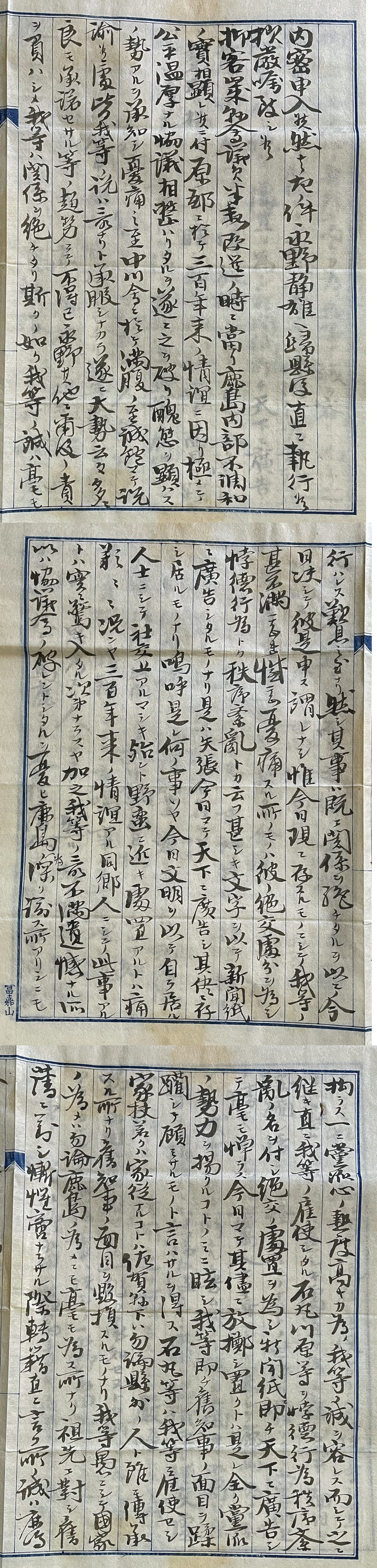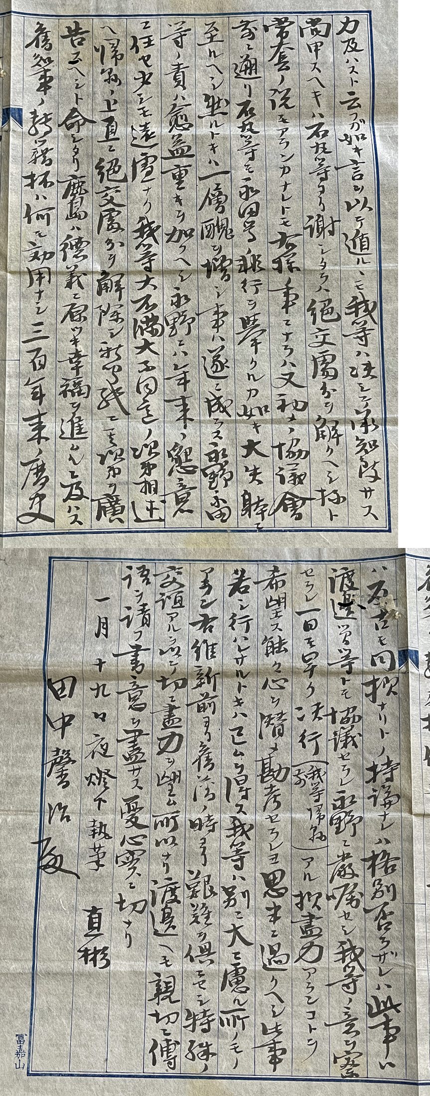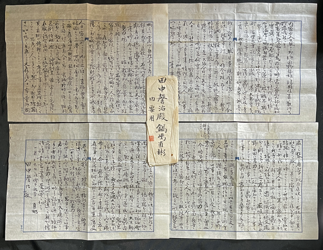 - ◆鍋島直彬 肉筆書簡⑤ 肥前国鹿島藩第13代(最後)藩主/幕末期の大名/政治家/初代沖縄県令 田中馨治(旧鹿島藩士)宛 手紙・古文書