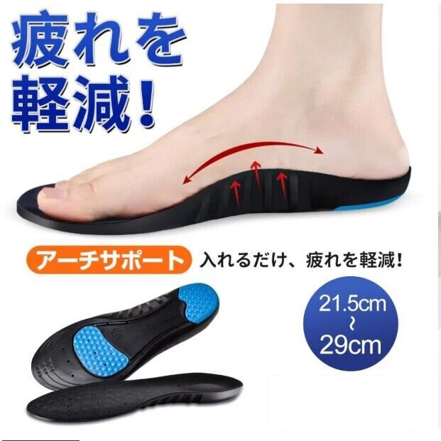 - インソール 中敷 アーチサポート 衝撃吸収 土踏まず 反発 防臭通気 クッション 疲労軽減 スニーカー 男女兼用 M/23.5~26.5cm hw88