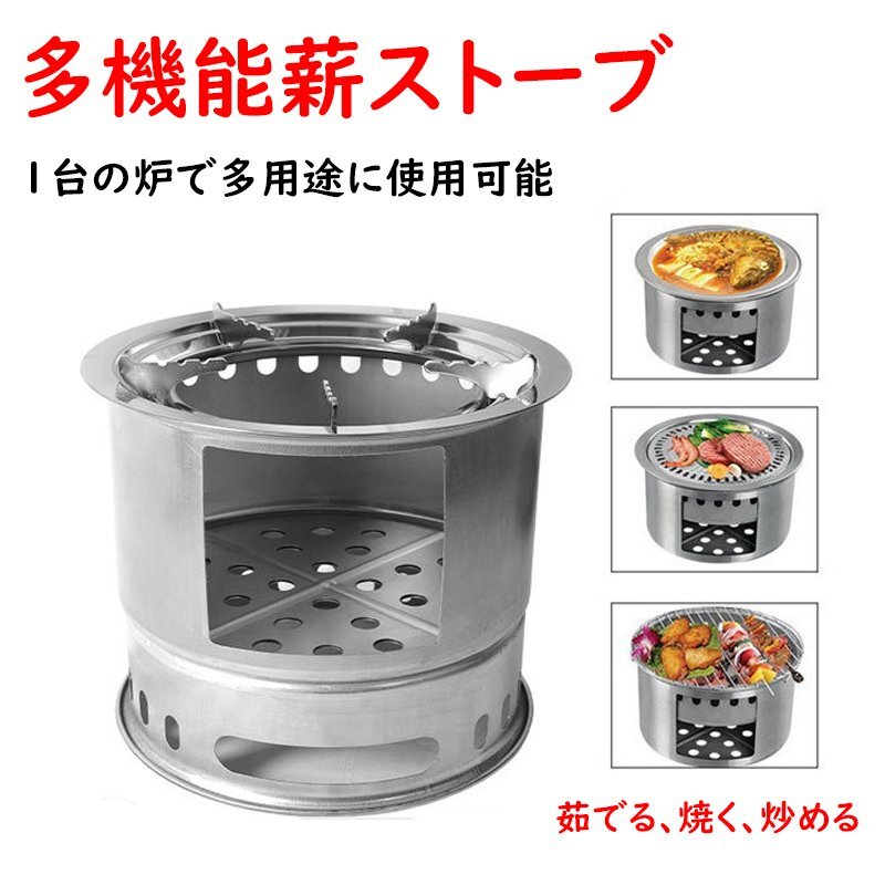 - マルチコンロ 薪ストーブ 焚火台 バーベキューコンロ バーベキュー キャンプ コンロ 二次燃焼 着火 薪 炭 ストーブ 焚き火台 防災 hw1071