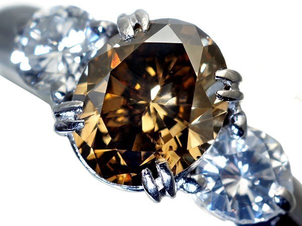 - 1円~【ジュエリー極】超希少!超大粒上質天然1粒ブラウンダイヤモンド1.030ct&脇ダイヤ0.434ct 超高級Pt900リング k1119zi【送料無料】