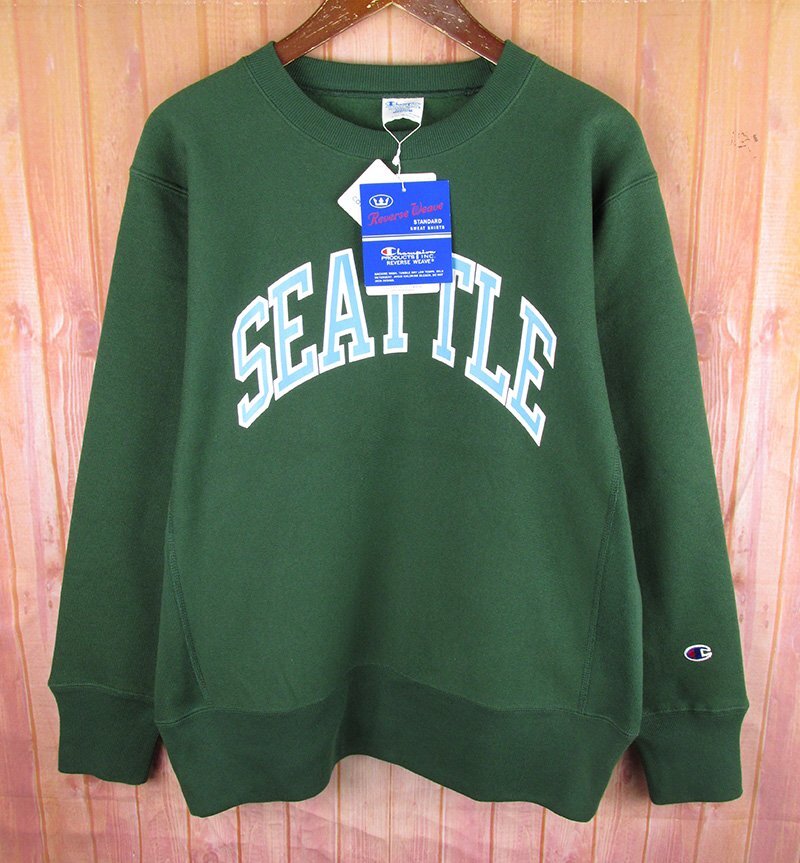 - FW9318 Champion チャンピオン REVERSE WEAVE リバースウィーブ クルーネック スウェット シャツ SEATTLE ボルトグリーン MEDIUM 未使用