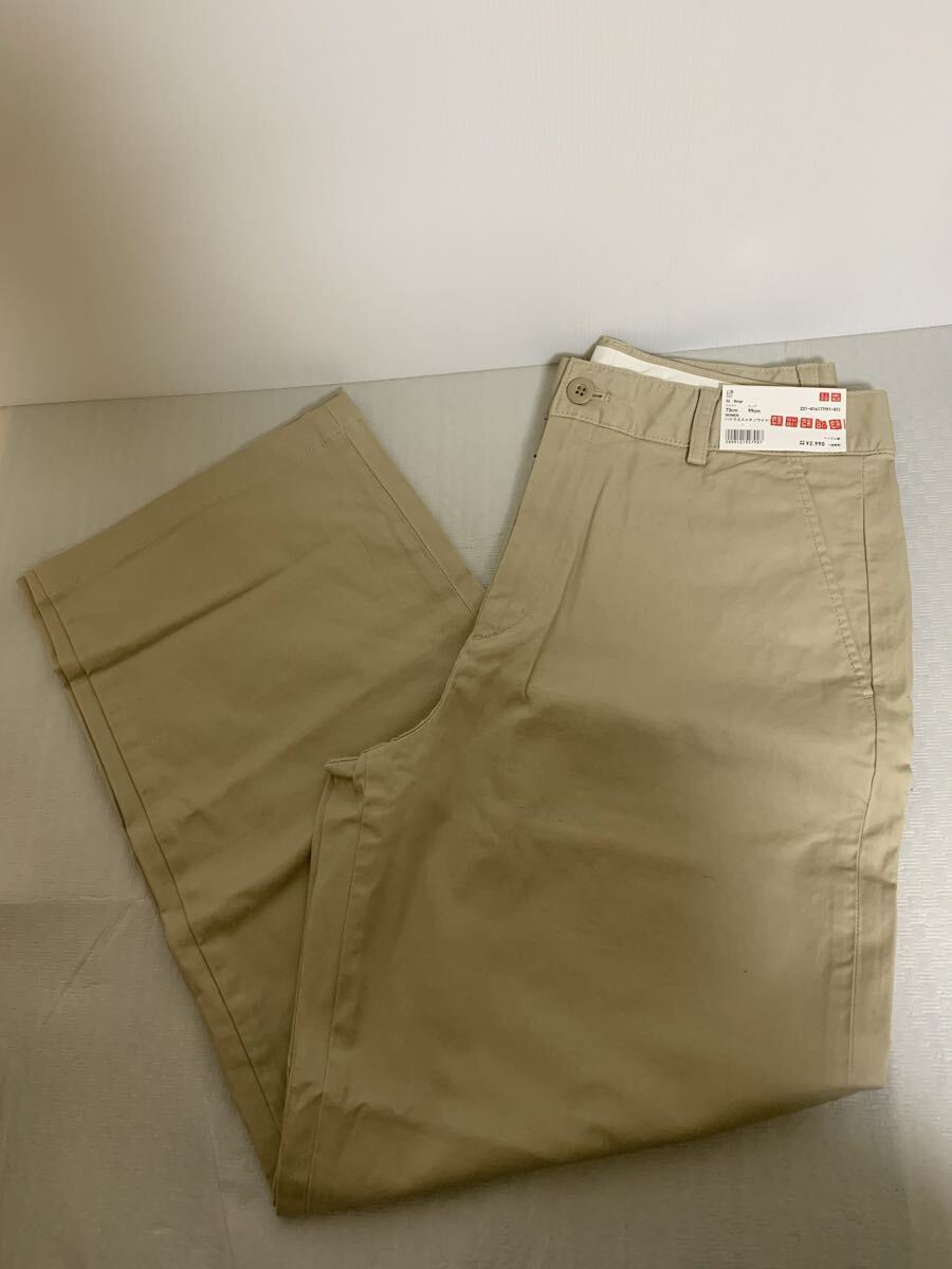 > タグ付 UNIQLO ユニクロ ハイウエストチノワイドストレートパンツ/ボトムス/タグ記載ウエスト73cm ベージュ ウーマン/裾上げ不明